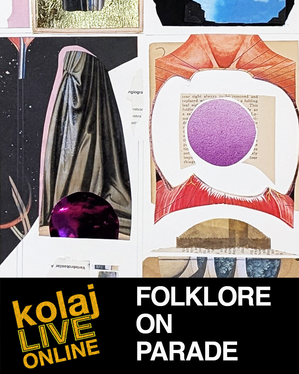 Folklore Collage Society is a printed journal dedicated to artwork and artists who activate, transmit, and celebrate folklore as a form of cultural expression and a strategy for community resilience. In its pages, stories, statements, essays, field notes, poetry, and song lyrics mingle with collage art that shows how collage artists are thinking about the folklore.