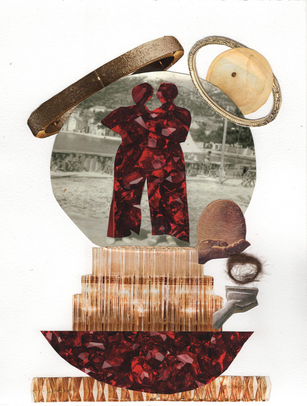 Image: Gifts to Ghosts 1 by Ariya Aladjem Wolf (11″x8.5″; collage on printmaking paper; 2023)