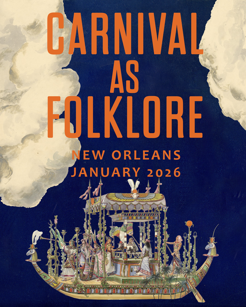 Carnival as Folklore is a five-day, in-person collage artist residency at Kolaj Institute in New Orleans, 25-30 January 2026. Carnival’s traditions are rooted in ancient European festivals. Its 19th-century revival in the Americas parallels a time when people were rediscovering and reveling in Greek and Roman Mythology. As such, carnival is dripping with folklore. No place does Carnival like New Orleans, where the city comes alive in a mass display of collective effervescence. During this in-person Artist Residency, collage artists will be invited to spend a week in New Orleans investigating Carnival as folklore and making art about it. Taking a broad view of collage and rooted in an understanding of Artist Practice, artists will hear a working theory of folklore; what it is; how it functions in communities; and the role artists can play in activating, transmitting, and celebrating folklore in communities as a form of cultural expression and a strategy for community resilience.