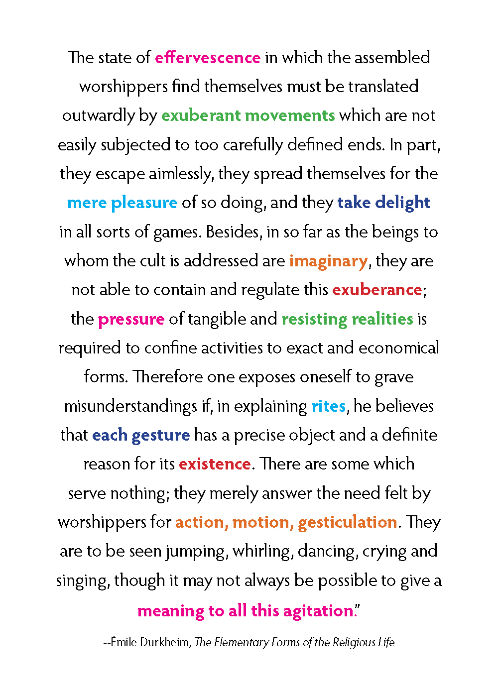 Durkheim, Émile. (1964). The elementary forms of the religious life (Joseph Ward Swain, Trans.) George Allen & Unwin Ltd. (Original work published 1915), p. 381.
