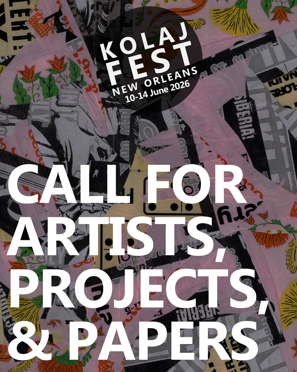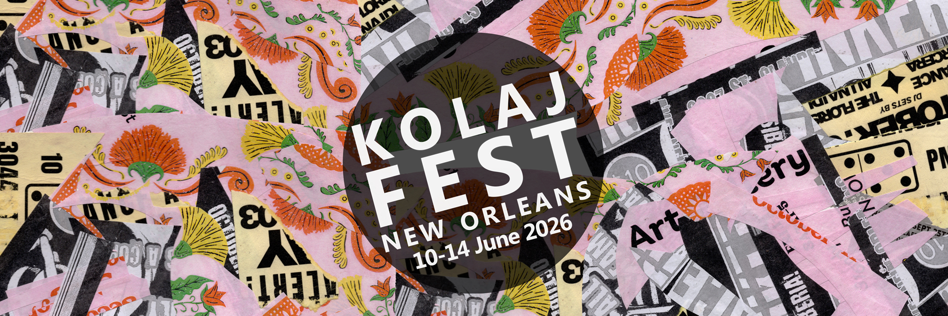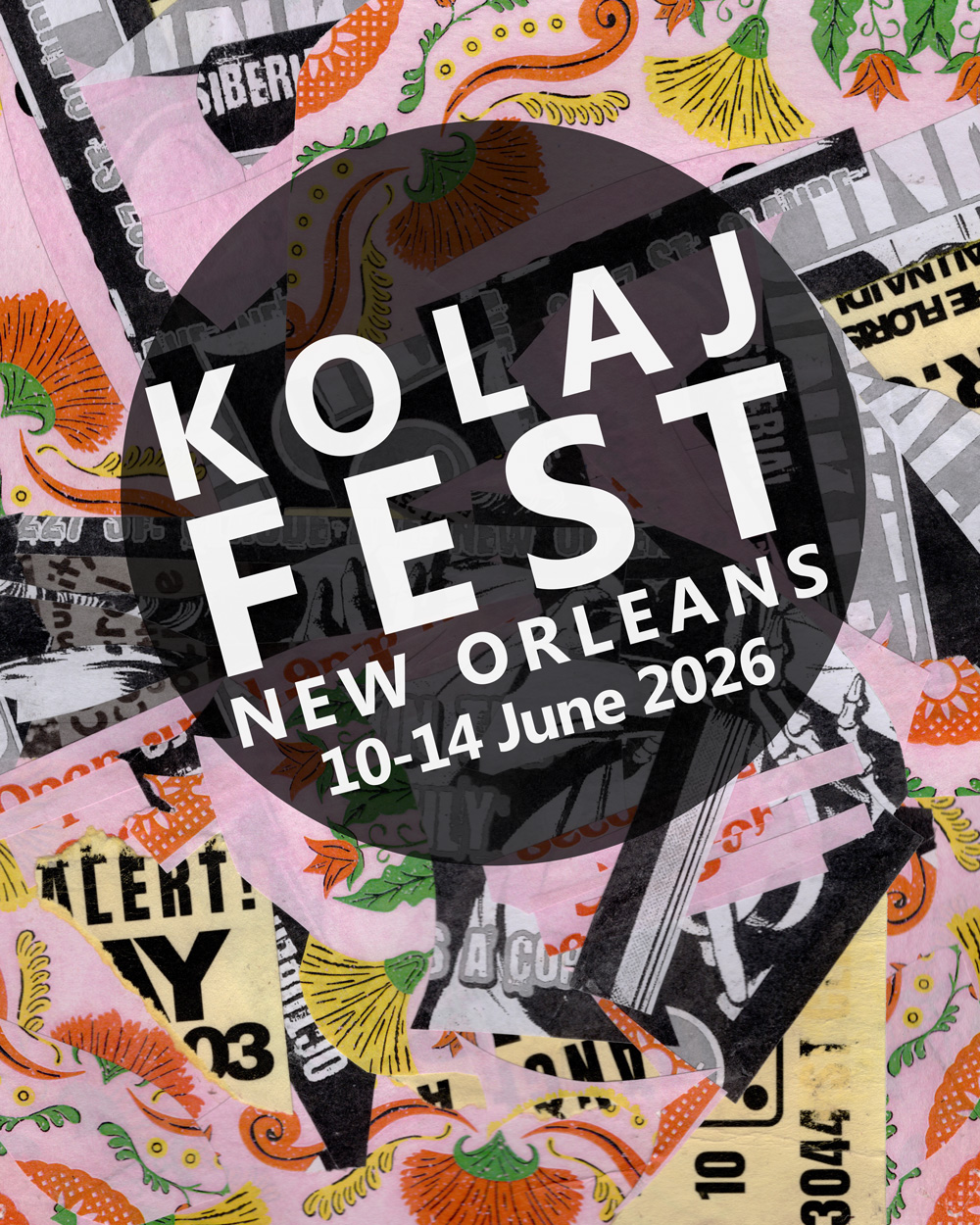 Kolaj Fest returns to New Orleans on 10-14 June 2026 for a gathering of collage artists and art professionals; a multi-day festival and symposium about contemporary collage and its role in art, culture, and society; where the focus is how we celebrate and elevate the status of collage.