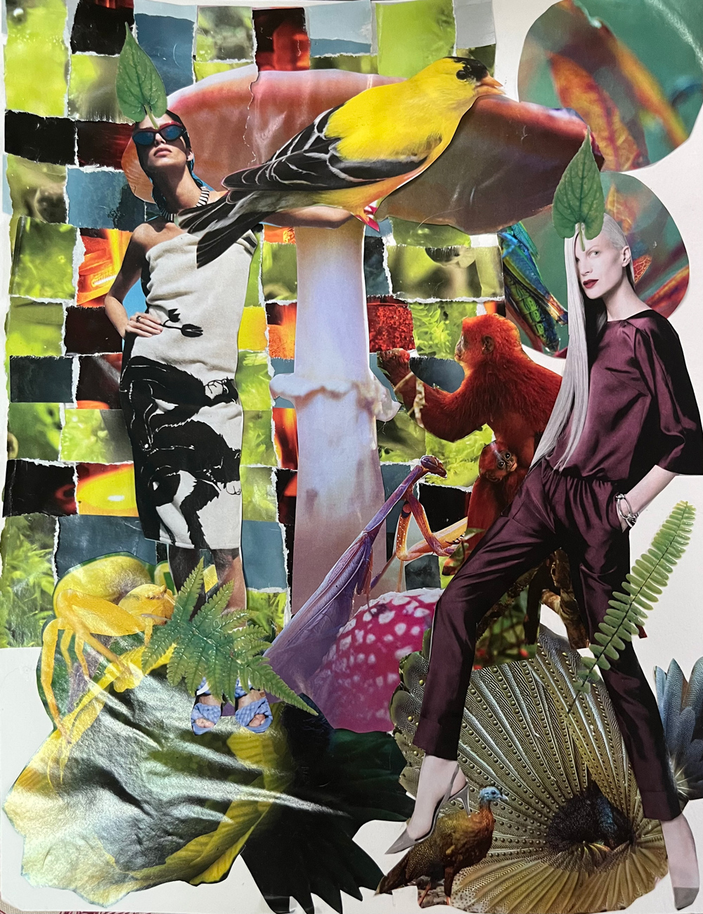30″x22″; collage of magazine pieces, painted paper, and poster on Rives BFK; 2021. Courtesy of the artist.