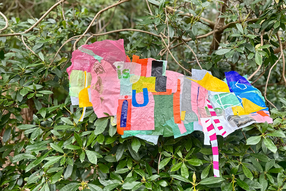 The premise of the “Collage the Planet: Environmentalism in Art” was that science has the capacity to tell us how to care for the planet, but those solutions are meaningless if humanity doesn’t care enough to evolve and change. Art is a unique technology that can distill complexity into simple human gestures that, when experienced, facilitate a deeper understanding of our world. In short, art can be a tool for caring. Artwork by New Orleans artist Jill Stoll and Detroit, Michigan artist Jonilyn Paige spoke to themes of Trash as Material.